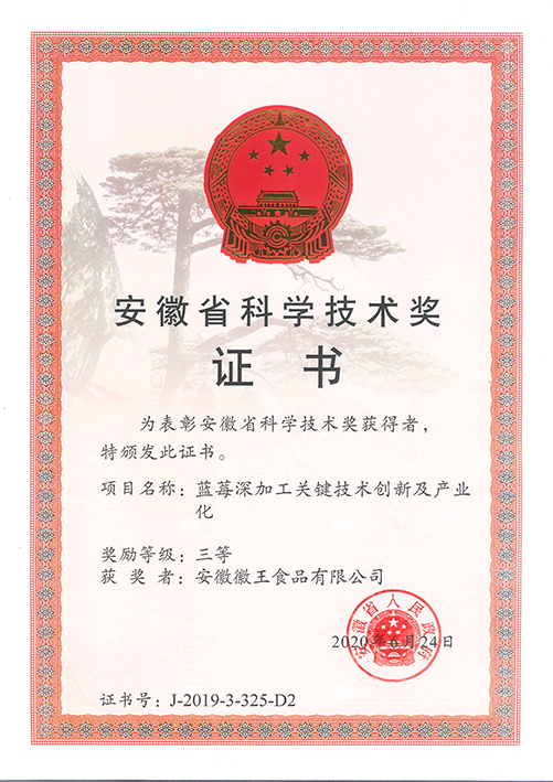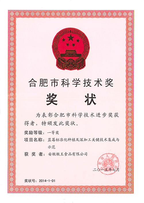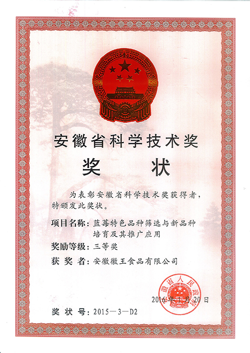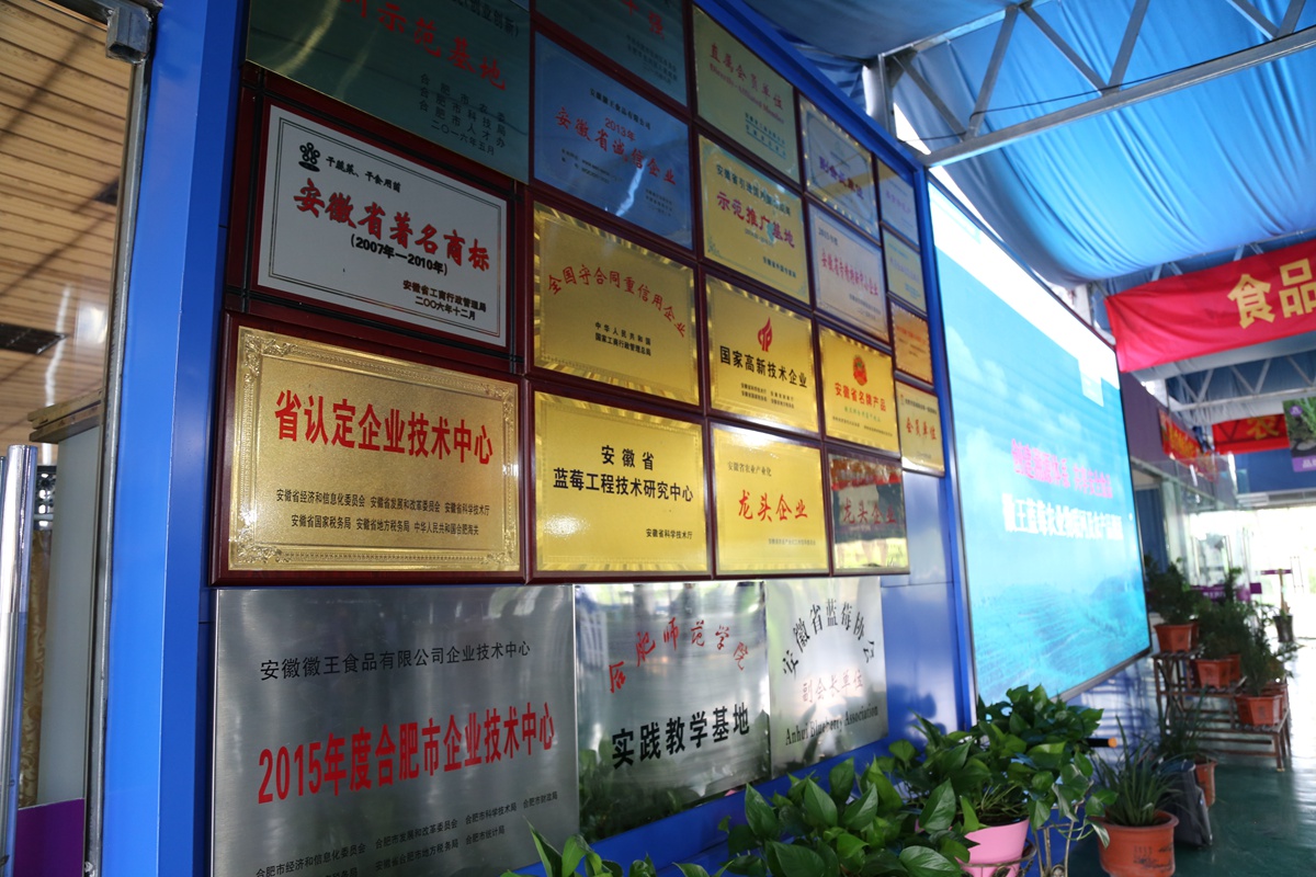 公司以科研院所為技術(shù)依托單位,并以政府政策為導(dǎo)向,大力發(fā)展特色精品農(nóng)業(yè)、休閑觀光農(nóng)業(yè),先后在合肥與蕪湖建立了8個(gè)藍(lán)莓標(biāo)準(zhǔn)化種植基地,基地面積約4000余畝,直接受益農(nóng)戶達(dá)3000多戶。并于2014年組建安徽省藍(lán)莓工程技術(shù)研究中心,主要從事藍(lán)莓種苗適生性篩選與新品種研究、標(biāo)準(zhǔn)化種植技術(shù)研究和藍(lán)莓精深加工產(chǎn)品的研發(fā)。良種‘徽王1號’、‘徽王2號’已通過主管部門認(rèn)定;目前產(chǎn)品有藍(lán)莓干紅、果干、果汁、果醬、蜂蜜等。截止目前,公司制定國家標(biāo)準(zhǔn)1項(xiàng)、地方標(biāo)準(zhǔn)4項(xiàng),獲授權(quán)發(fā)明專利19項(xiàng),發(fā)表論文10余篇。